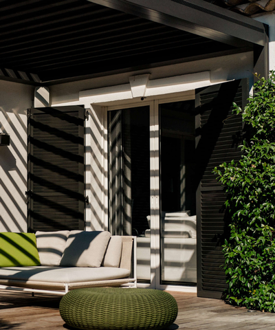 Connectez votre pergola pour encore mieux en profiter. Utilisez votre smartphone pour trouver la meilleure orientation des lamelles, pilotez l'éclairage, la musique et le chauffage.