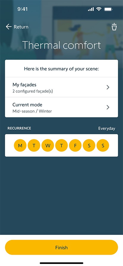 In de zomer blokkeert ze het zonlicht en kan het gebruik van airconditioning tot 70% verminderen*. TaHoma optimaliseert comfort én energie-efficiëntie in elk seizoen.