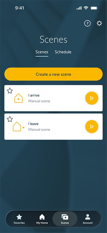 Met de TaHoma® app centraliseer je eenvoudig de bediening van je apparaten en creëer je persoonlijke scènes. Je activeert meerdere apparaten tegelijk met één tik. Elke ochtend kun je bijvoorbeeld de scène “Ik ga weg” starten. Je rolluiken sluiten, de verlichting gaat uit, de garagepoort opent en sluit weer af na vertrek. De beveiliging wordt vervolgens ingeschakeld.